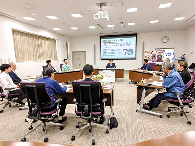 Topics トピックス HOME トピックス 新規就農者と厚木市長 意見交換 2025.12.8 新規就農者と厚木市長 意見交換 厚木市内で農業を営む新規就農者と厚木市の山口貴裕市長が意見交換を行う「あつぎタウンミーティング」が11月6日、JAあつぎ本所で行われました。 当日は、厚木市都市農業支援センターの支援を受けて就農した4人が参加し、就農したきっかけや営農する上でのやりがい、将来の目標などについて話し合いました。 令和7年度あつぎタウンミーティング(新規就農者編)/厚木市